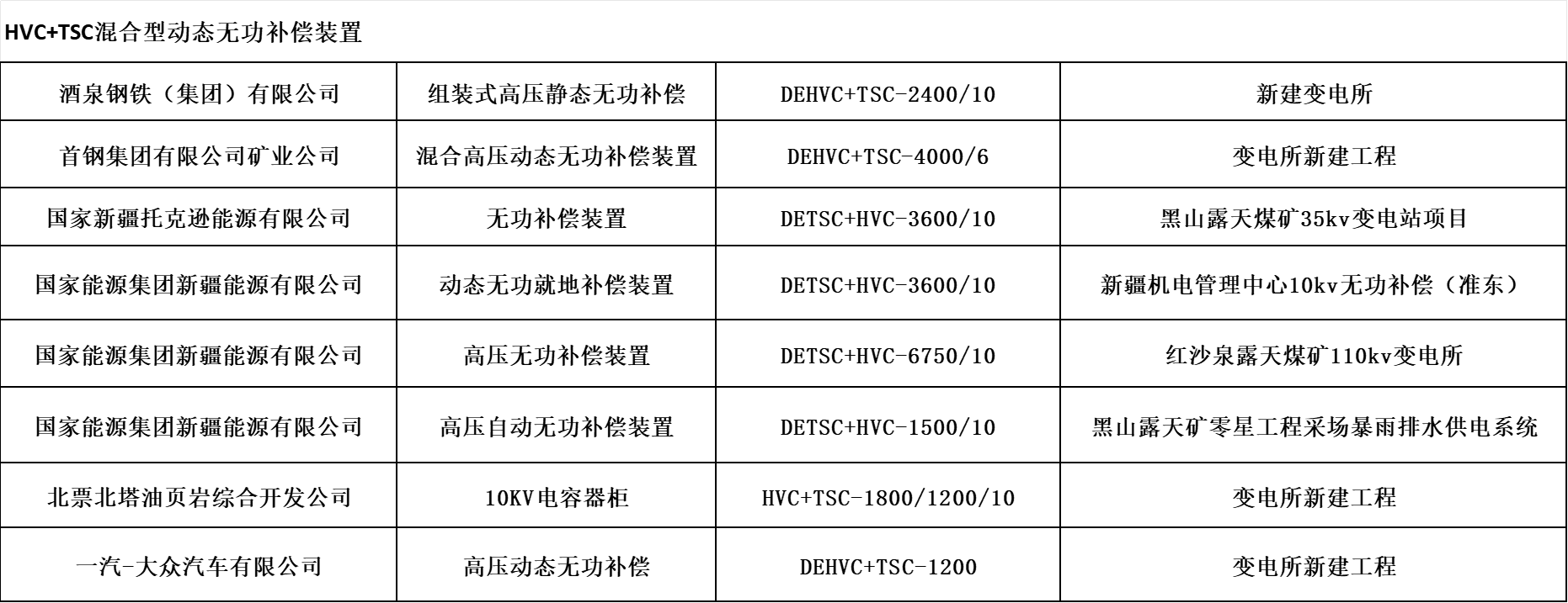 高壓HVC+TSC動態(tài)無功功率補償裝置廣泛應用于高壓交直流輸變電系統(tǒng)和冶金、煤炭、港口門機、電氣化鐵路、重型機械制造等工業(yè)、交通沖擊性負荷配電網(wǎng)中。其主要作用就是對沖擊性負荷、時變負荷能夠?qū)崟r監(jiān)測、動態(tài)補償,實現(xiàn)功率因數(shù)補償至0.9以上,穩(wěn)定系統(tǒng)電壓,減少供電系統(tǒng)的網(wǎng)絡(luò)損耗,提高電能質(zhì)量等顯著特點,可以給用戶帶來巨大的經(jīng)濟效益和社會效益。