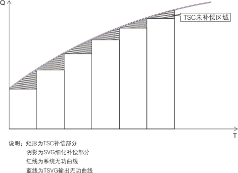 傳統(tǒng)補(bǔ)償裝置采用電容器提供無(wú)功功率,電容器組分組容量是固定的,輸出容量有階差,很難達(dá)到與系統(tǒng)無(wú)功安全平衡,而大容量的SVG成本很高,故我們公司經(jīng)過(guò)多年的實(shí)踐和摸索,研發(fā)出了TSVG,采用小容量的SVG大容量的TSC相結(jié)合,即節(jié)省了成本又達(dá)到了SVG響應(yīng)速度快、無(wú)級(jí)性補(bǔ)償?shù)男Ч?,無(wú)功容量保證連續(xù)調(diào)節(jié)與平滑輸出。